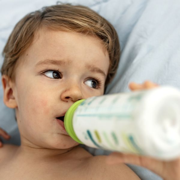Même si votre enfant grandit et devient presque un « grand », ses besoins en lait infantile restent encore importants. On estime qu’ils se situent entre 500 et 800 mL/jour(3), une quantité qui peut être répartie en 2 à 3 biberons : un biberon de lait infantile au petit-déjeuner pour bien commencer la journée, un autre au goûter et enfin un dernier peut être pris au dîner. Afin d’être sûr(e) qu’il prenne bien ces quantités recommandées, pensez à lui donner son biberon de lait de croissance en premier avant le reste des aliments du repas.